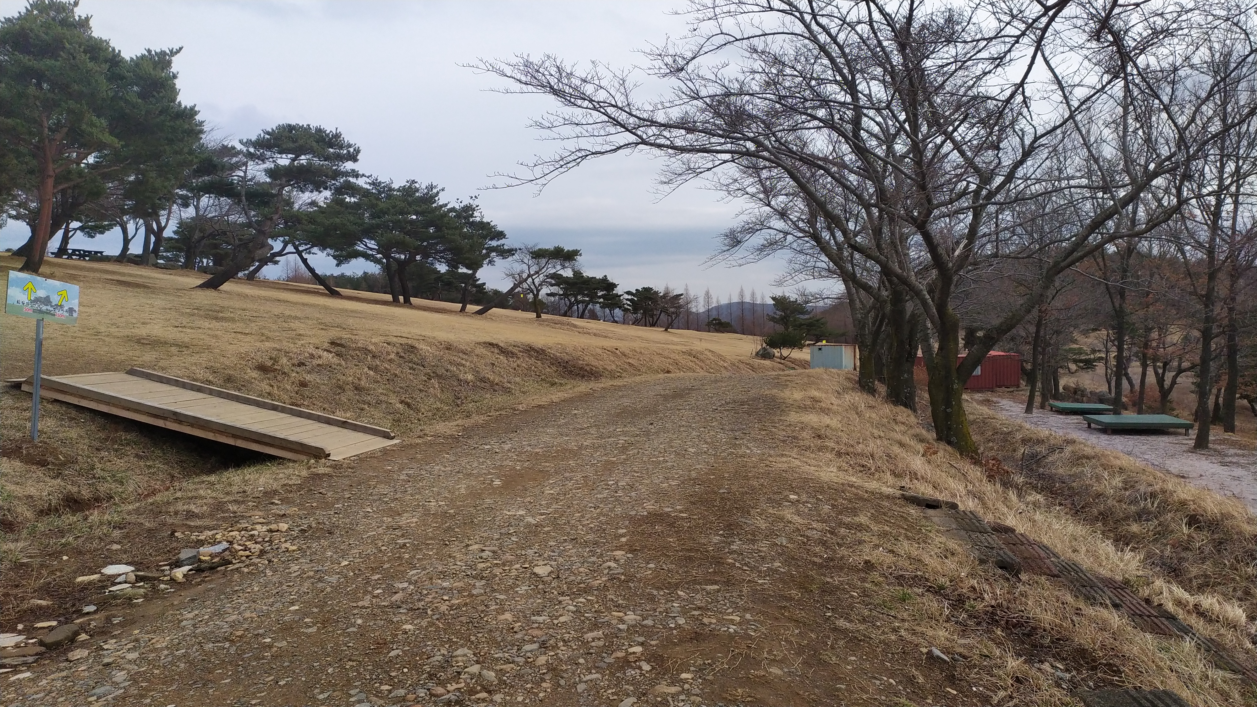 매표소를 지난 5분정도 올라가면 주차장이 나오고 차량 파킹후 걸어서 화랑의언덕으로 올라가면 됩니다. 아쉽게도 캠핑클럽에서 본 푸른 잔디는 겨울이라 볼 수 없었다.