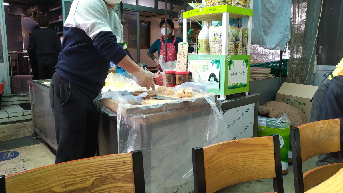 비닐장갑을 착용했지만 아쉬운 위생관리는 동림식당의 마이너스 점수를 줄 수밖에 없다. 촌두부를 이곳에서 자르는데 촌두부 접시 위 계속 올려버리는 촌두부들...