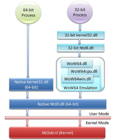 Intel64 / AMD64의 경우 완벽하게 32bit 프로그램과 64bit 프로그램을 움직일 수 있으며. 따라서 64bit 환경에서 32bit 프로그램을, 64bit 프로그램과 거의 동일한 성능으로 이동이 가능합니다. 그러나 WOW64을 사용하는 분 약간의 오버 헤드가 존재하기도 합니다.
