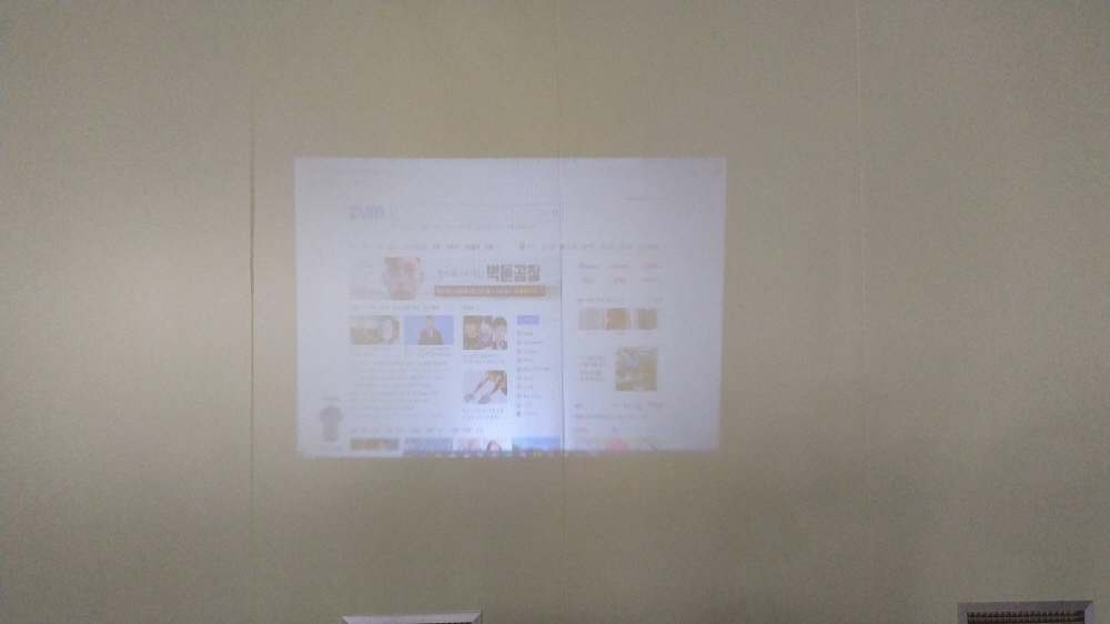 지금 이미지는 회사에서 테스트를 해보았다. 회사에 있는 모든 불을 모두 끄고 테스트를 했지만 너무 아쉬운 화질을 보인다. 투사거리는 약 2~2.5m 거리이며 80% 정도 빛을 차단했다고 느낀 어둠에서 테스트를 했으니 어느 정도 사실성이 있다고 본다. 만약 밀폐되면서 빛이 정말 차단된 방이라면 좀 더 좋은 화질을 보이겠지만 그래도 필자 입장에선 몬스터 빔 2 프로젝터는 가성비가 네티즌 글이나 말처럼 뛰어나 보이진 않는다.