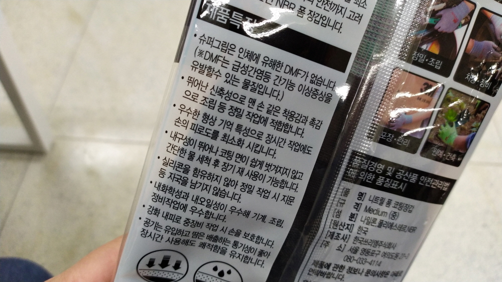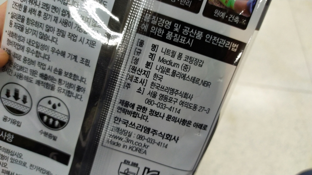 또한 3m 슈퍼 그립 장갑은 메디인 차이나가 아닌 코리아이다.
