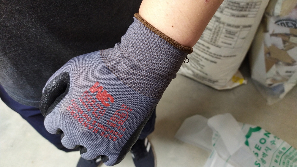 새 거인 점도 있겠지만 사진으로 보아도 쫀득쫀득한 느낌이 든다. 말 그대로 안전장갑이라 그립감을 살린 3M 슈퍼 그립 100보다는 착용감이 무겁다는 것은 확실하다.