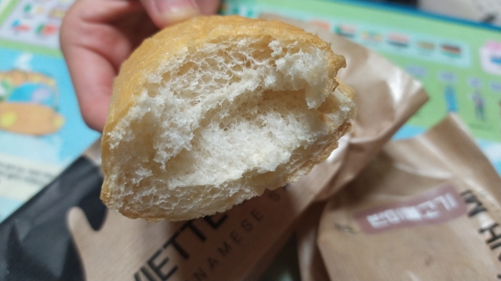 비에뜨반미는 바게트가 다르다기에 샌드위치 끝부분을 잘라먹어보았다.