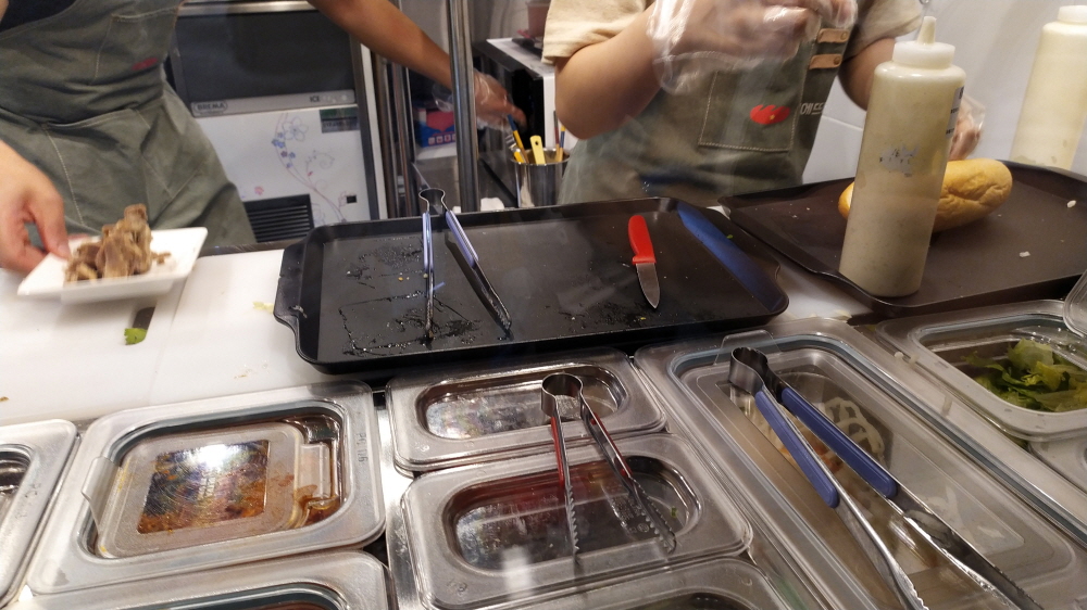 필자는 몇 가지 샌드위치를 주문하고 주문 전 커팅을 해달라고 했다. 아쉽지만 샌드위치 커팅하는 곳이 청결해 보이지 않는다.