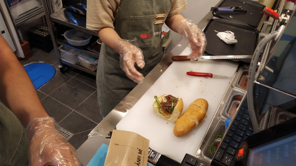 30분이 물론 지났다. 그래서인지 몰라도 일반 빵집 바게트랑 큰 차이가 없다. 그리고 토핑과 함께 먹어본 비에뜨 반미 샌드위치의 맛은 너무 짜다!!