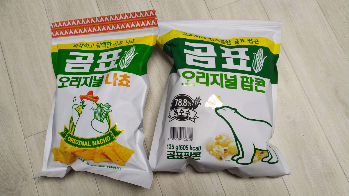 아쉽지만 요즘 꿀 조합 포기하고 곰표 오리지널 나쵸, 곰표 오리지널 팝콘 먹어보기로 한다. 대한민국 국민이라면 누구나 명절에 한 번은 보게 되는 밀가루? 그렇다 그 밀가루 제조사인 곰표에서 이런 제품들을 출시하게 되었다. 그래서인지 곰표라는 이름도 낯설지 않고 캐릭터인 곰 또한 아주 친근하게 보인다.