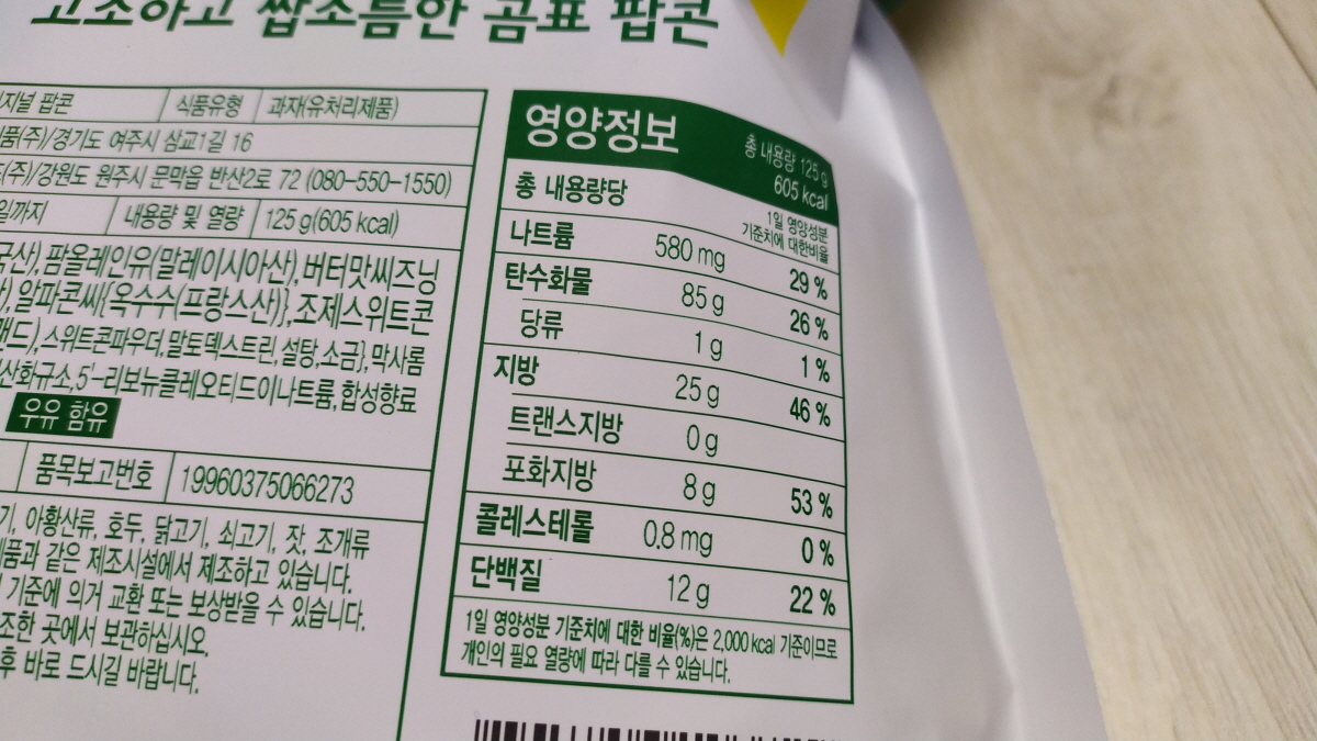 ▷곰표 오리지널 팝콘 & 나쵸 영양정보
