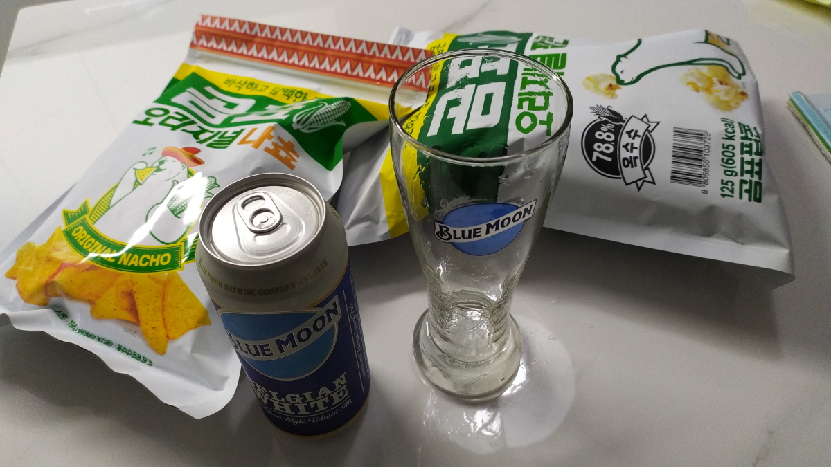 근데 사진만 보아도 맥주가 당긴다. 냉장고에 들어있는 블루문 맥주 오픈을 한다.