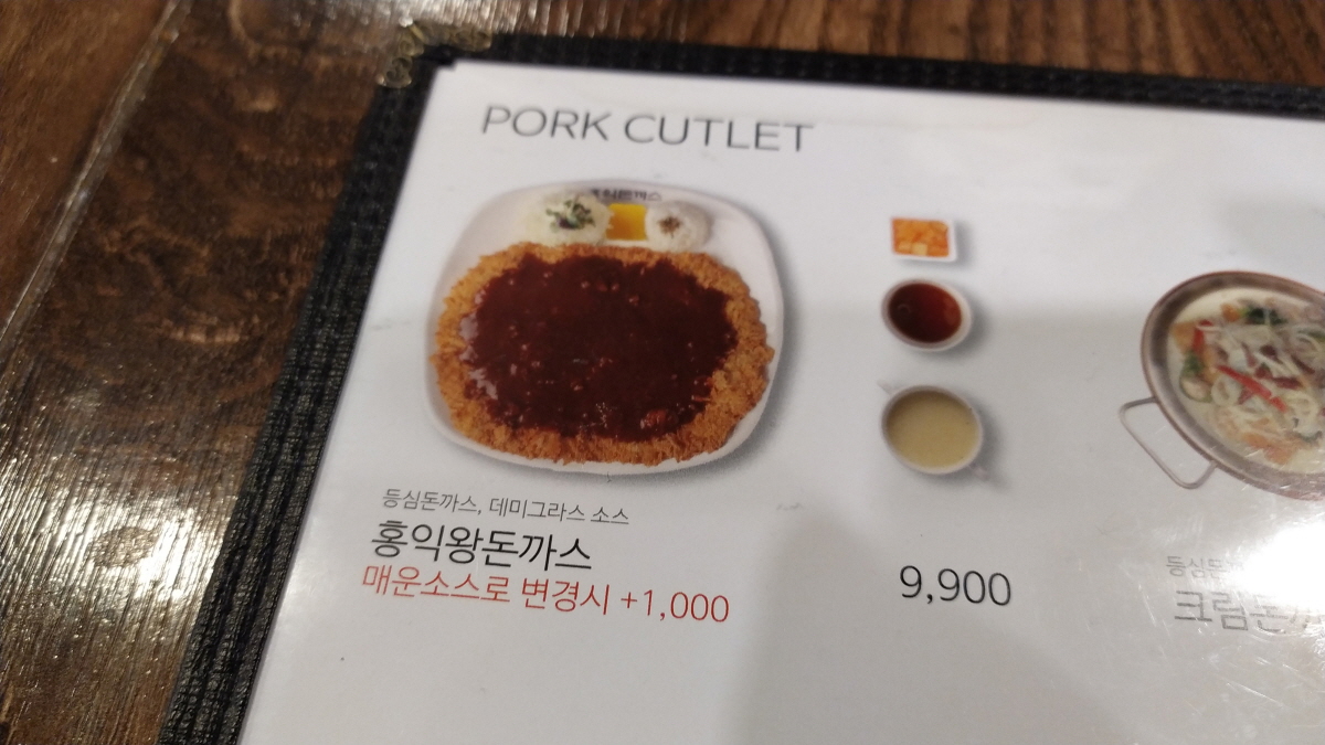 처음 방문하여 홍익왕돈까스 맛볼 때 매운 소스를 먹었는데 생각보다 매운맛이 강했든 기억이 난다. 아이들이야 순한맛 먹고 어른들은 기름기가 싫다면 매운소스 함께 주문하여 먹어보면 좋겠다. 기름기가 소스하나로 싹~ 사라질것이다. 매운소스 추가 시 별도 추가 요금이 발생한다. +1000원
