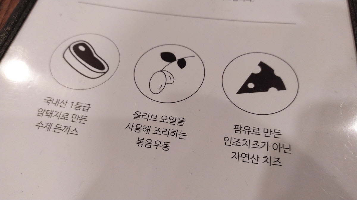 홍익돈까스 메뉴판을 보니 왜? 이들 메뉴가 1위, 2위인지 알 수가 있을듯하다. 홍익왕돈까스는 국내산 1등급 암퇘지로 만든 수제돈까스, 해물볶음우동은 올리브 오일을 사용해 조리한다고 하니 주문한 음식들이 더 기다려진다.