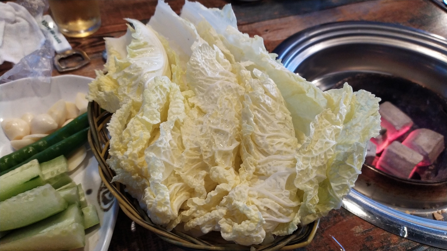 정동진아나고를 좀 더 맛나게 먹을 핵심 포인트, 아나고 만큼이나 속배추 인기가 상당하다. 아주 신선하고 단맛이 일품이다. 아나고랑 절대 궁합이다. 사진으로는 많은 양 같지만 먹어보면 부족하여 더 주문하게 된다.