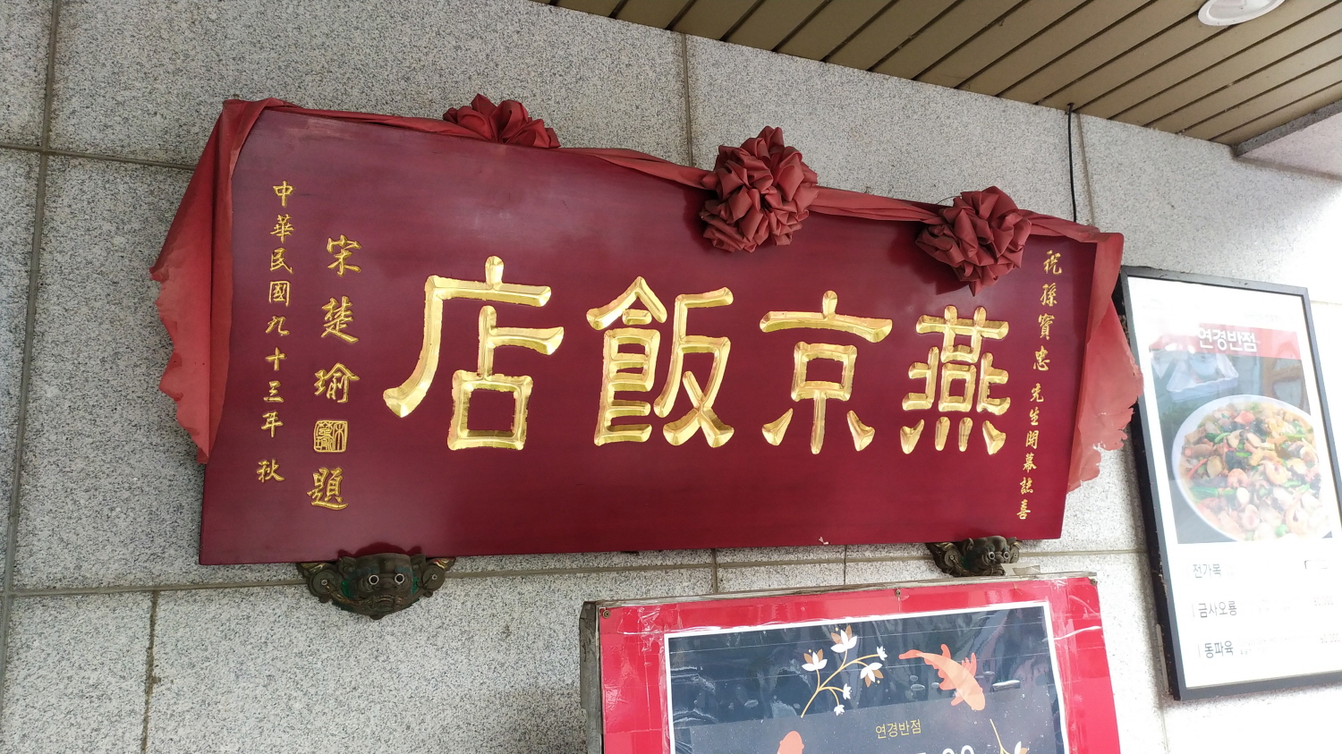 입구에 들어서자 천장에 걸려있는 중국식 인테리어 느낌, 우리 가게는 쫌 비싸다 하는 느낌이 살짝 든다. 하지만 가격대는 그렇게 많이 비싼 느낌은 아니다. 연경 반점을 다녀오신 분들의 후기를 보면 대부분 코스요리나 탕수육&전가복을 추천한다.