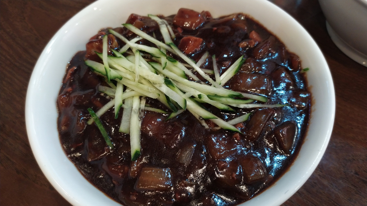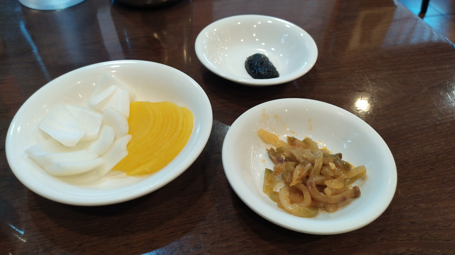 어떤 중국집이라도 기본 세팅되는 생양파와 단무지 그리고 춘장, 근데 연경 반점에서는 하나 반찬이 있다. 바로 오이무침? 짜사이가 나온다. 맛은 기억이 나지 않지만...