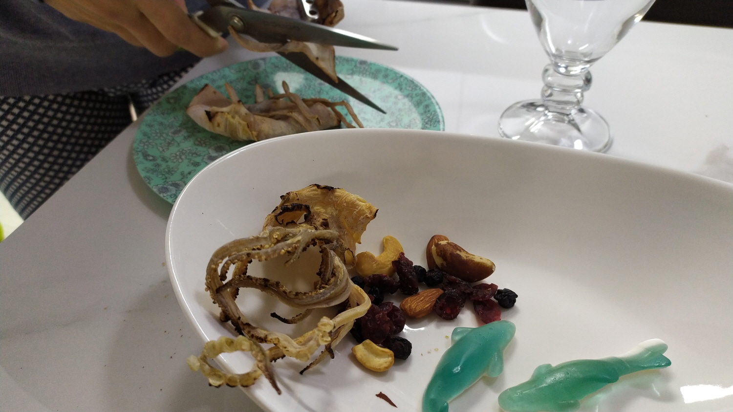 오늘의 안주는 마른오징어와 젤리이다. 젤리는 아이들 간식용으로 구입한 것인데 아이들이 먹어보라고 주는데 맥주와 함께 먹기는...ㅠㅠ 하지만 사진 찍기 보니 너무 예쁘다~