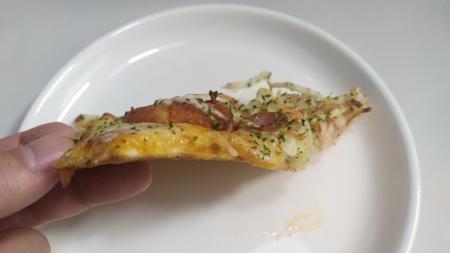 피자요 크랩쉬림프 피자 보자마자 아쉬움이 살짝 느껴진다. 이유는 도우의 두께이다. 서두에 말한 것처럼 필자 가족 그동안 먹어온 반올림 피자와 비교하면 도우의 두께 차이가 많이 난다. 그래고 아직 맛보기 전이니 도우의 두께로 피자 요피자 평가는 선급한 이유 같아 제대로 맛을 보기로 시작한다.