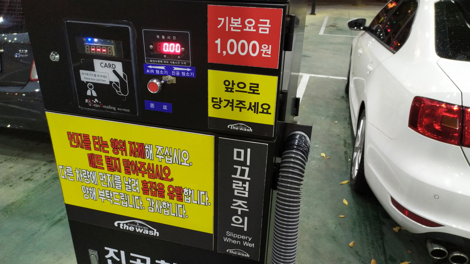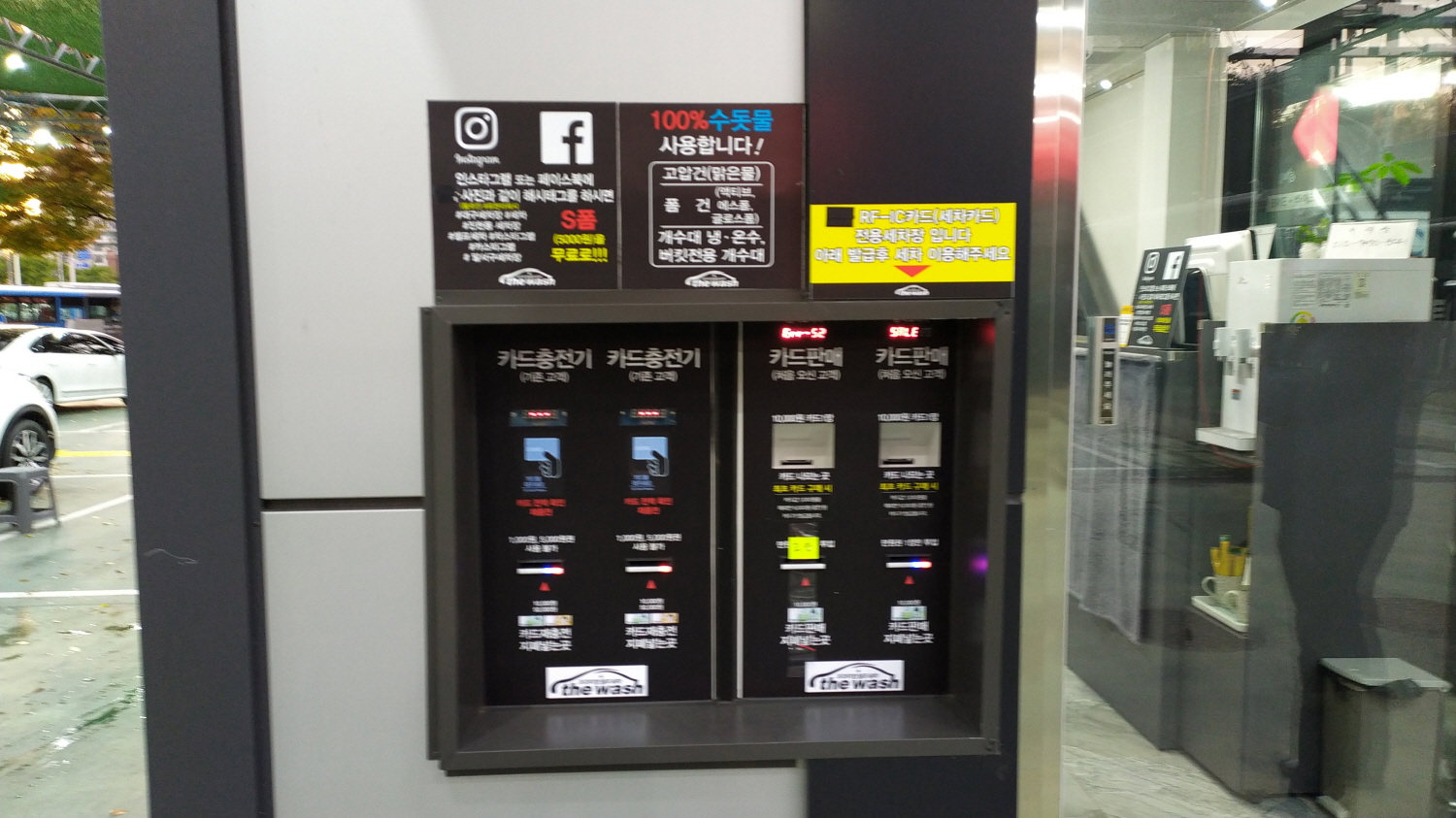 자동차 매트까지 세척준비가 되었다면 셀프세차를 하기 위해 돈을 충전하고 카드를 만든다. 카드충전기 위치는 대부분 세차장 관리사무실 쪽에 위치하고 있다.