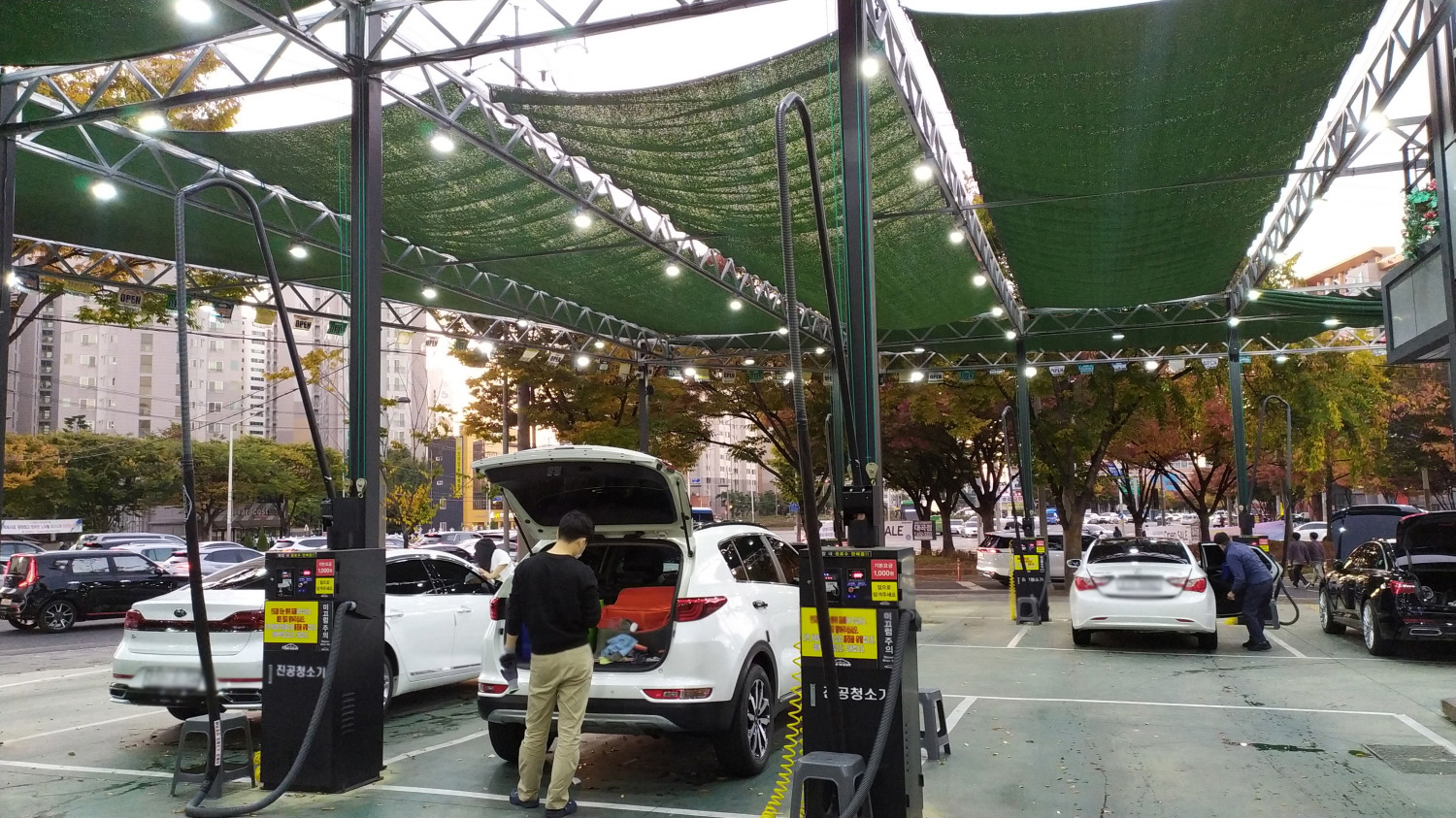 모든 외부 세차를 마무리했다면 이제 차량을 이동하여 차량 내부 세차를 해 여한다. 유천 더워시의 경우 주차 공간이 약 10여 대 가능한 것으로 보인다. 새 차를 한 차량들이라 그런지 반짝~반짝~하다.