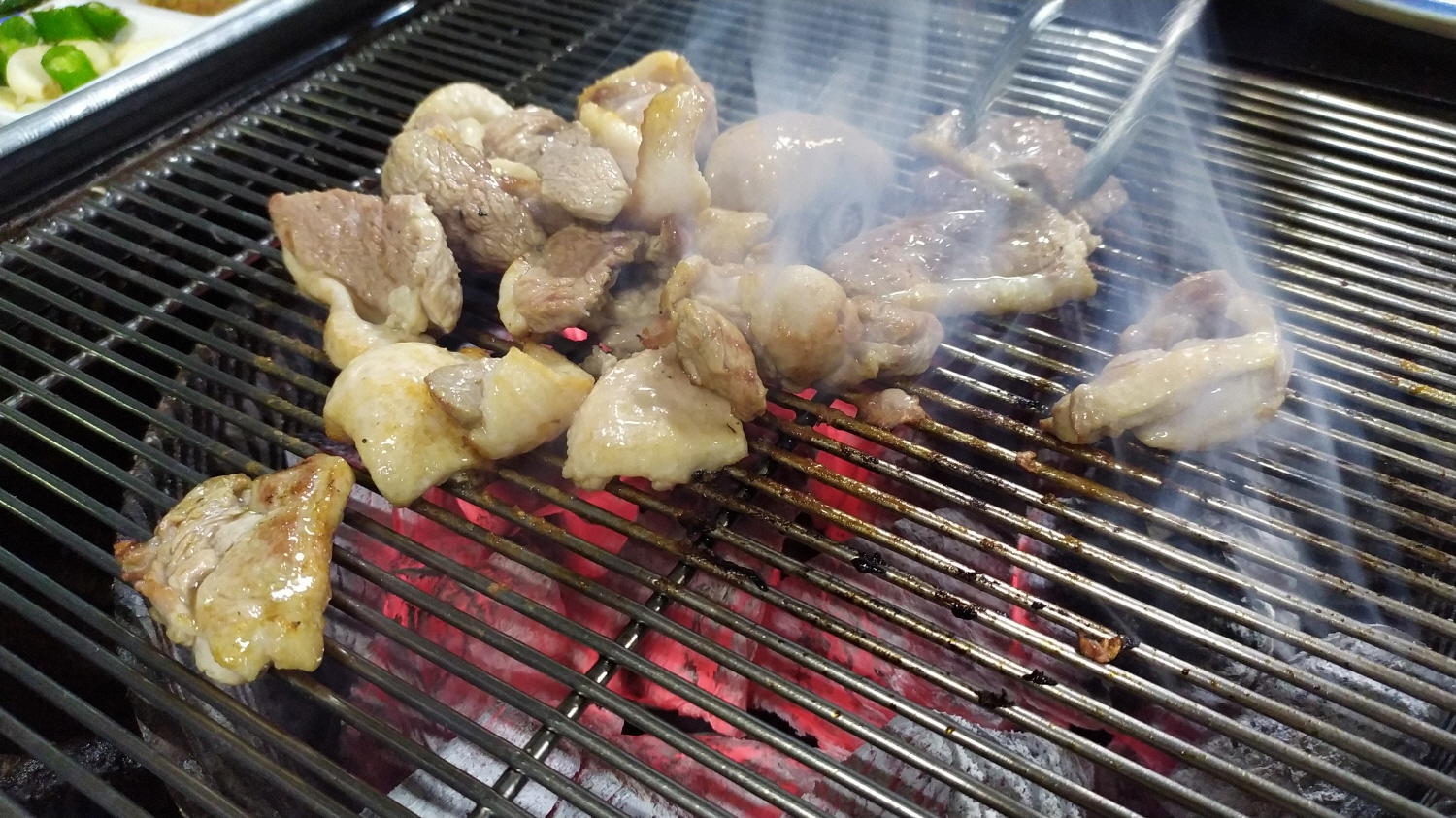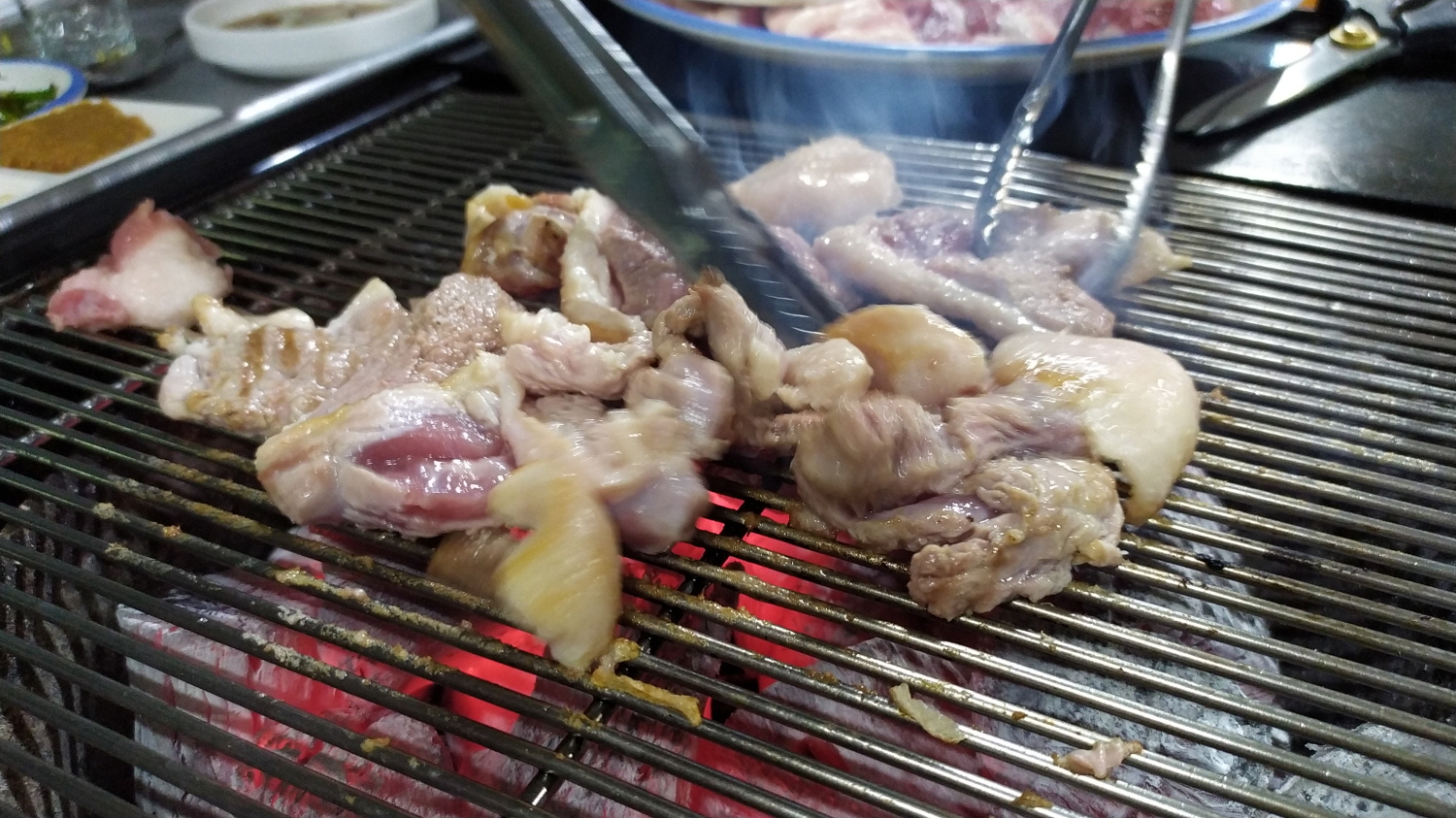 오리를 먹어 본 지 기억이 나질 않을 만큼 오래되었다. 숯불에서 잘 구워지고 있는 오리, 여기서 오리고기 잘 굽는 팁을 하나 주면 기름이 많은 오리고기 부분으로 석쇠에다 발라주면 오리고기가 석쇠에 달라붙는 것을 방지하는 듯하다. 대표님이 굽는 방법을 보고 글로 대신 올린다. 사실 어떤 고기를 구워 먹어도 비슷한 방법을 사용하지만 오늘은 오리고기라 더 신기했다.