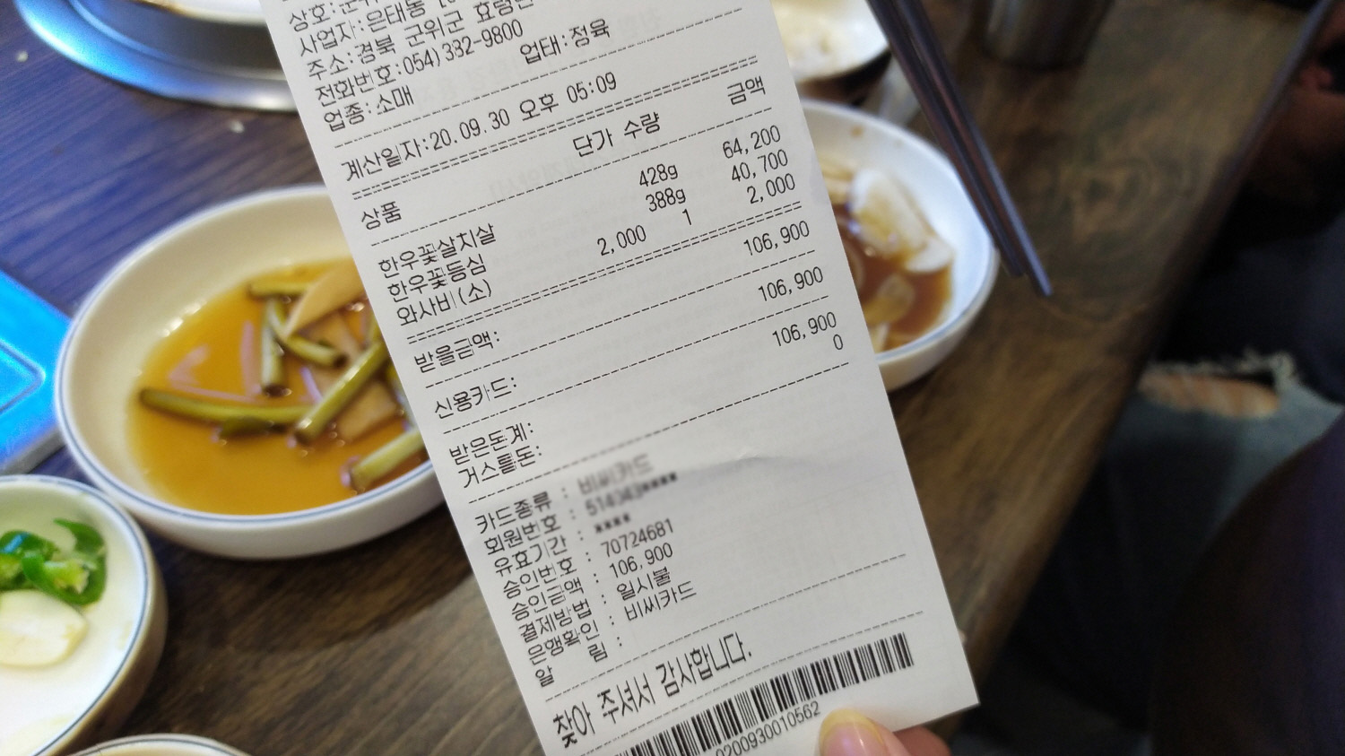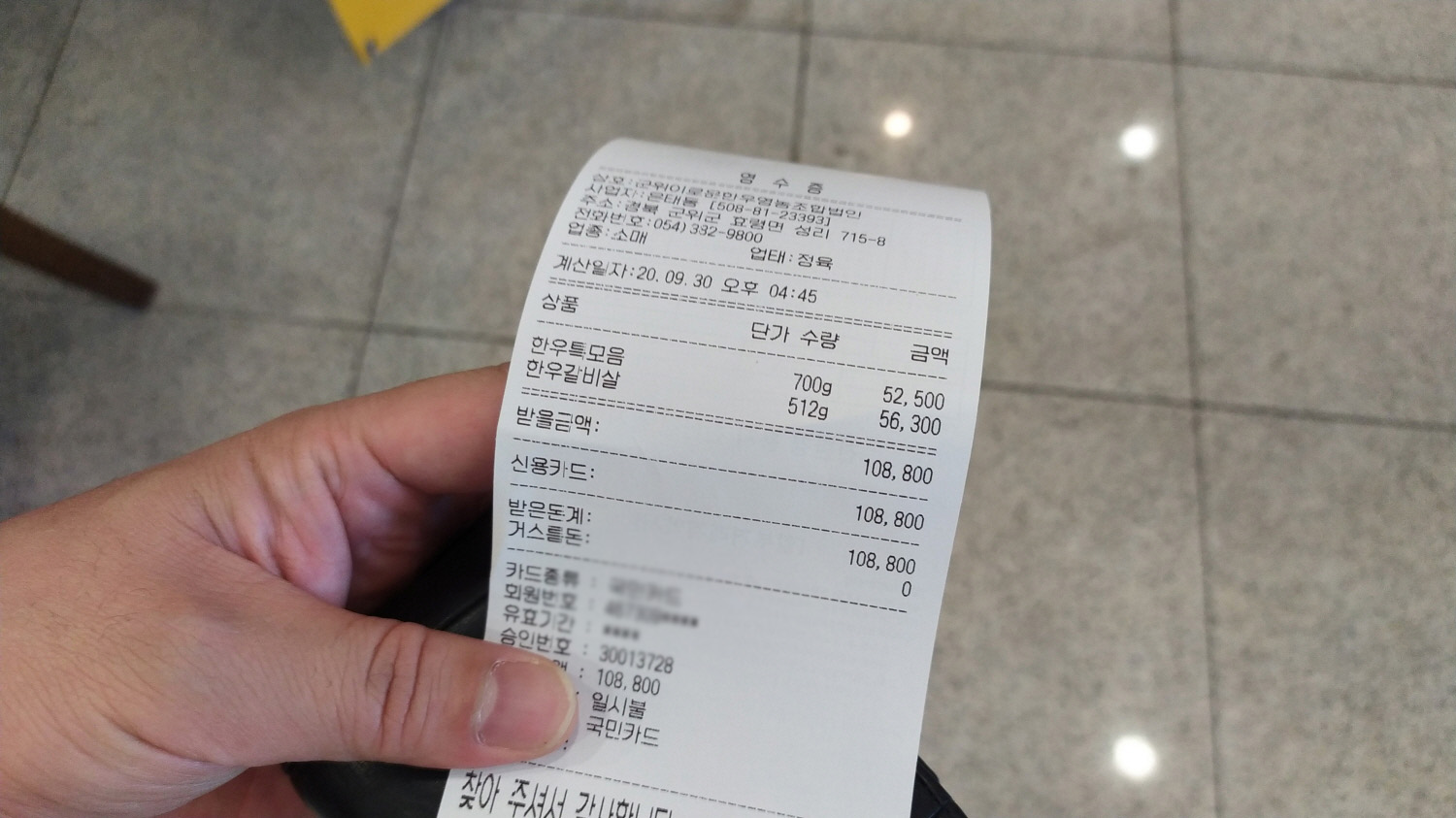1차로 구입한 소고기이다. 1차?라고 하니 다소 이상하겠지만 사실 2차까지 소고기를 먹었다. 내 돈 내산이니 1차 소고기 영수증을 첨부한다.