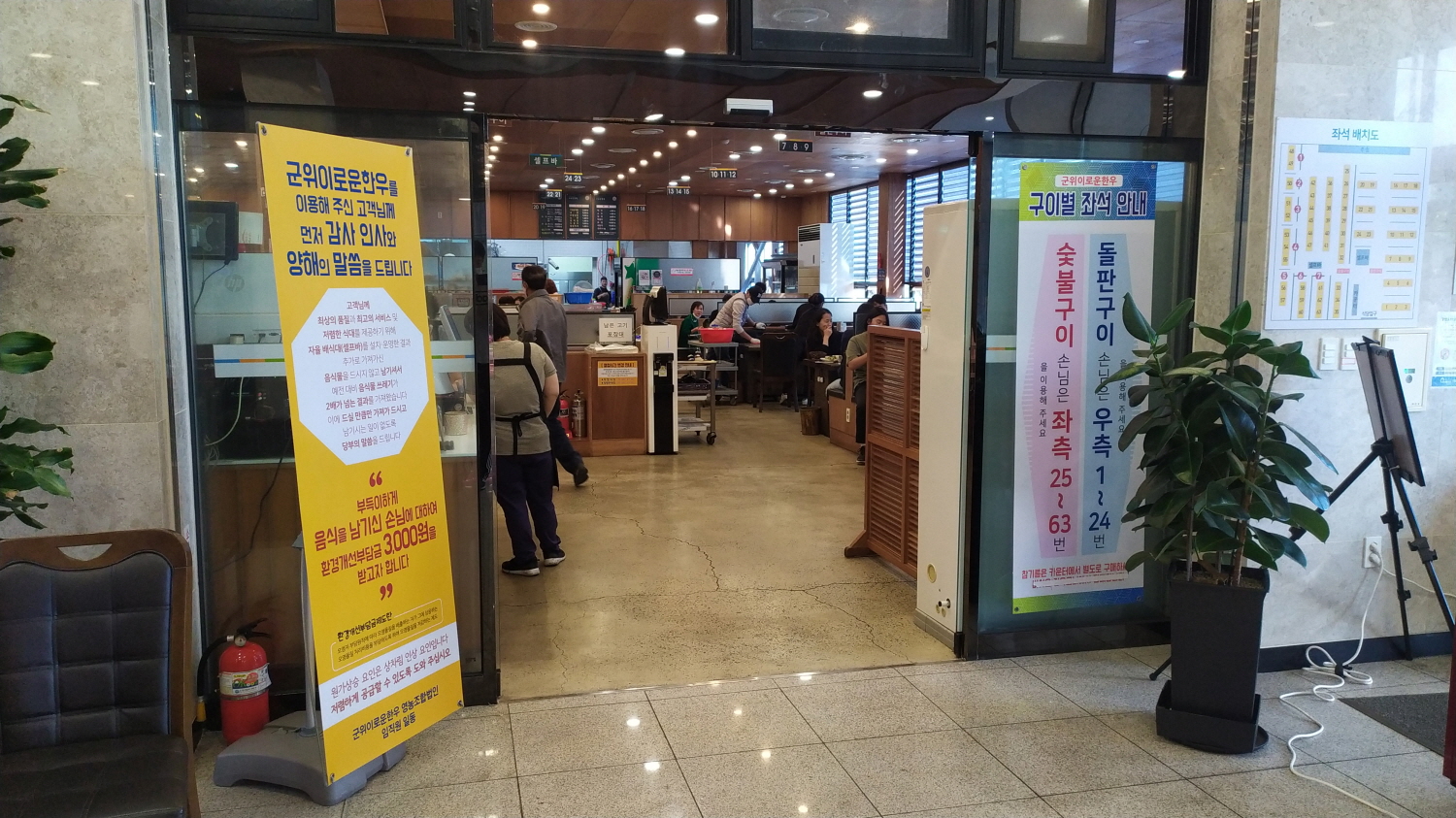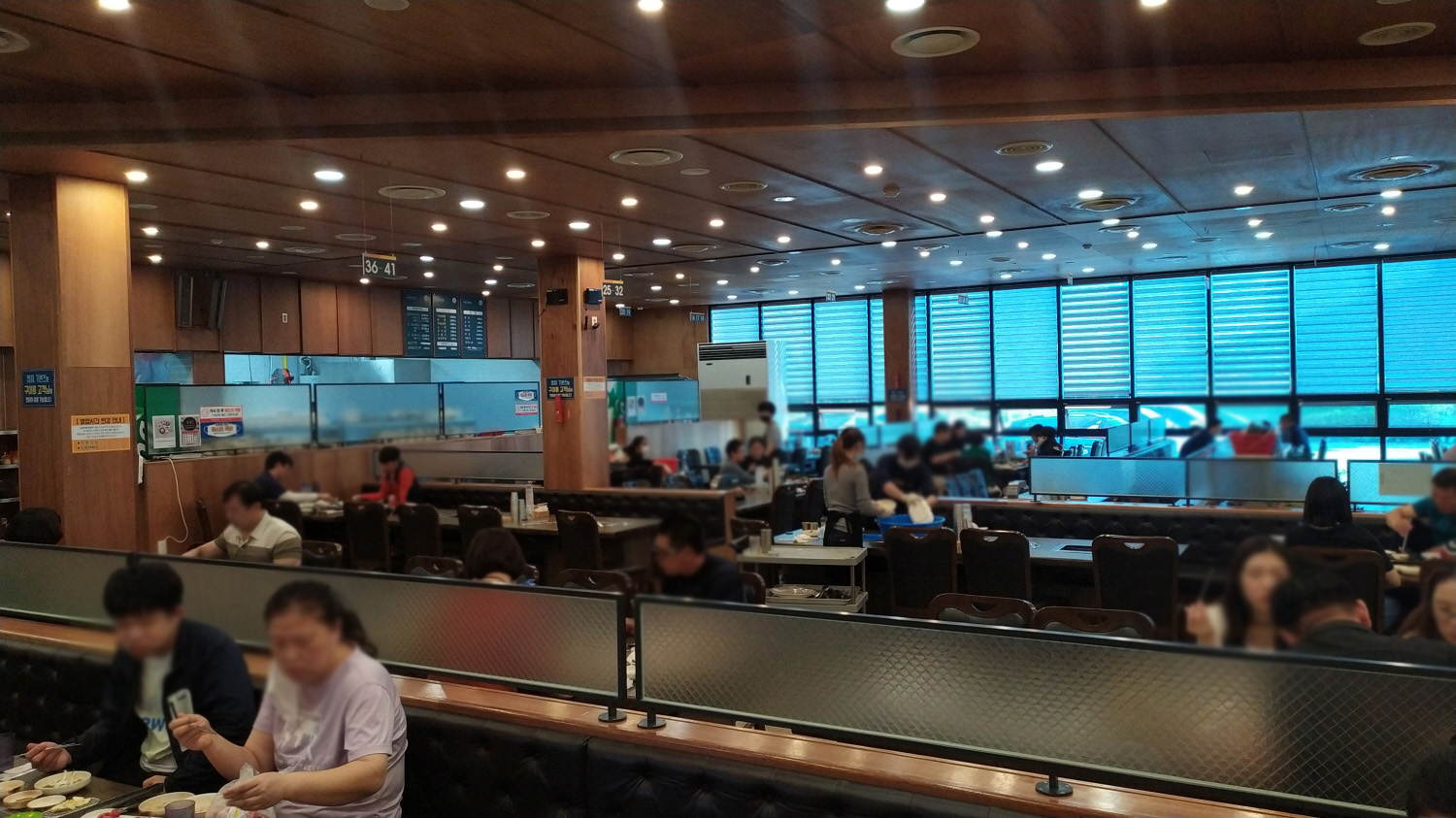 사진을 촬영할 때 그나마 사람들이 많이 빠진 상태이다. 우린 홀보단 실내가 좋을 듯하여 칸막이가 마련된 곳으로 이동한다.