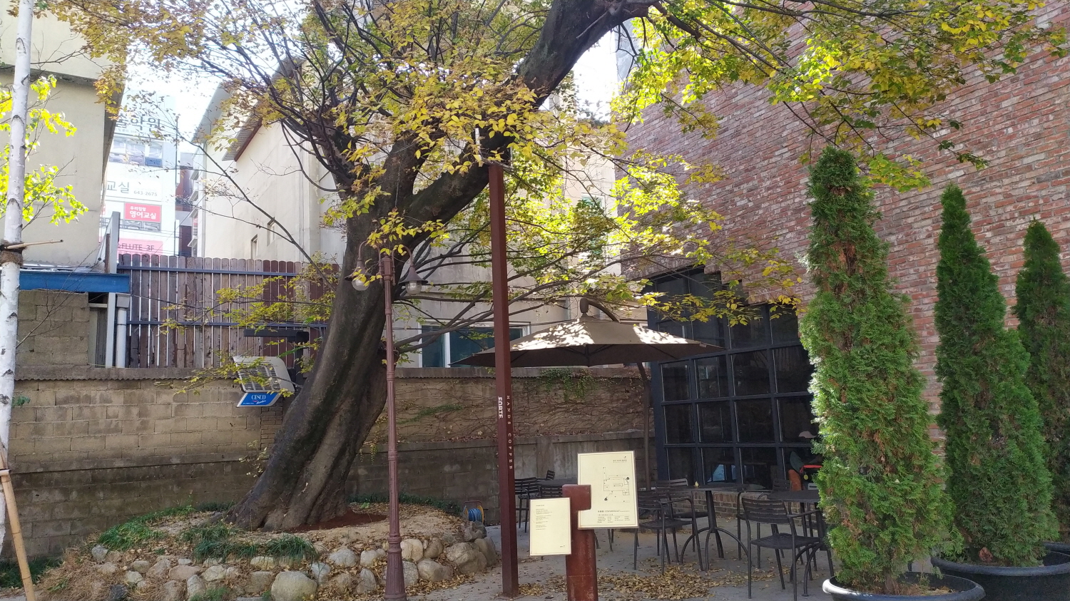 입구에서부터 보이는 정원 느낌, 가을은 가을이다. 낙엽들이 떨어지고 있으니 커피가 생각나고 차분한 분위기에서 책까지 읽고 싶은 마음이다.