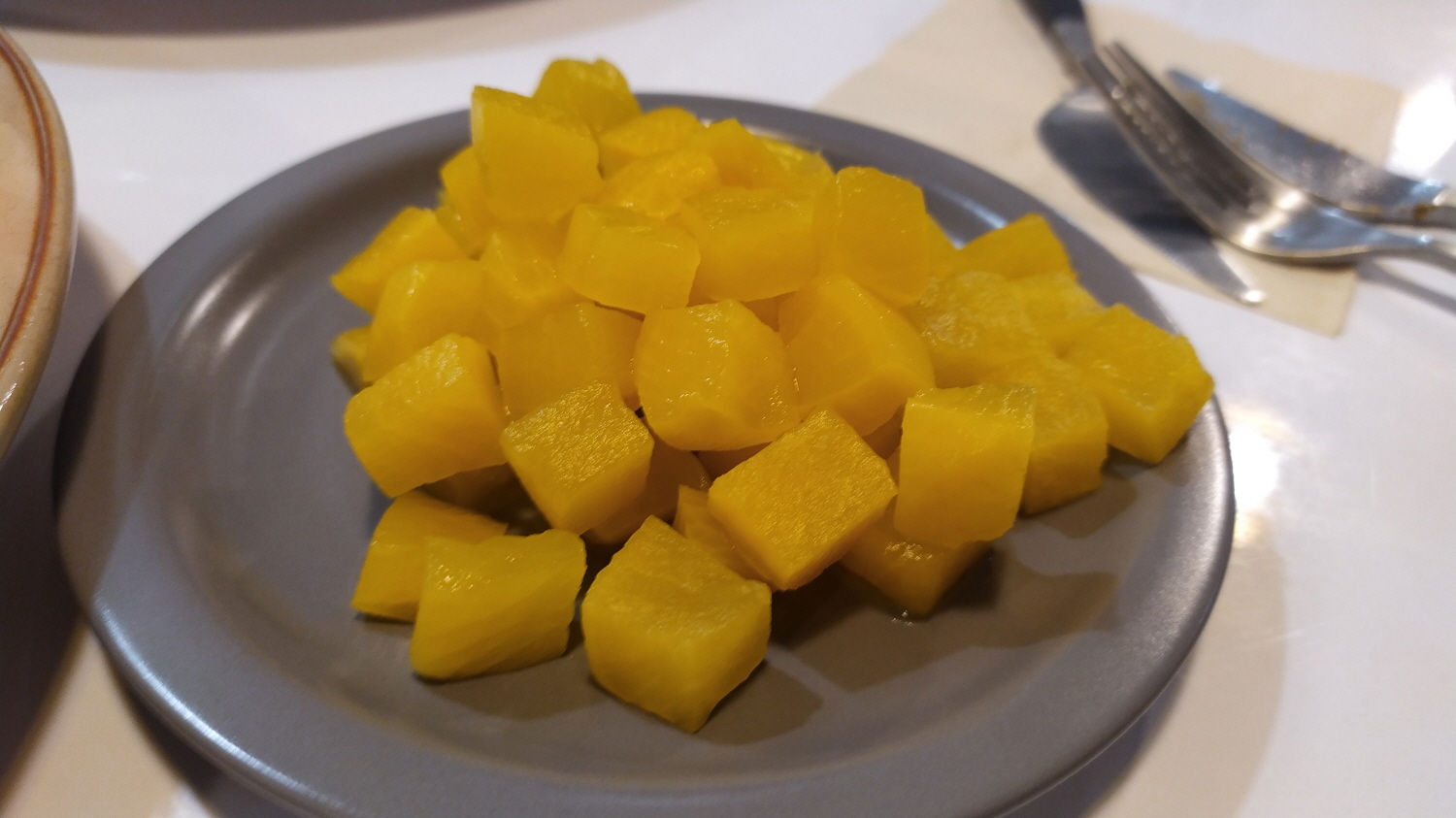 집사람이 가장 싫어한 단무지 모양!! 어떤 이유로 단무지를 이렇게 했는지 모르지만... 집사람이 보기엔 별로였나 보다 사실 메인 요리인 돈까스 맛이 별로라 써 그런지 단무지까지 욕을 먹는 느낌이 들지만 오늘 저녁은 뜨돈돈까스 먹자고 한 필자가 너무 미안할 따름이다.