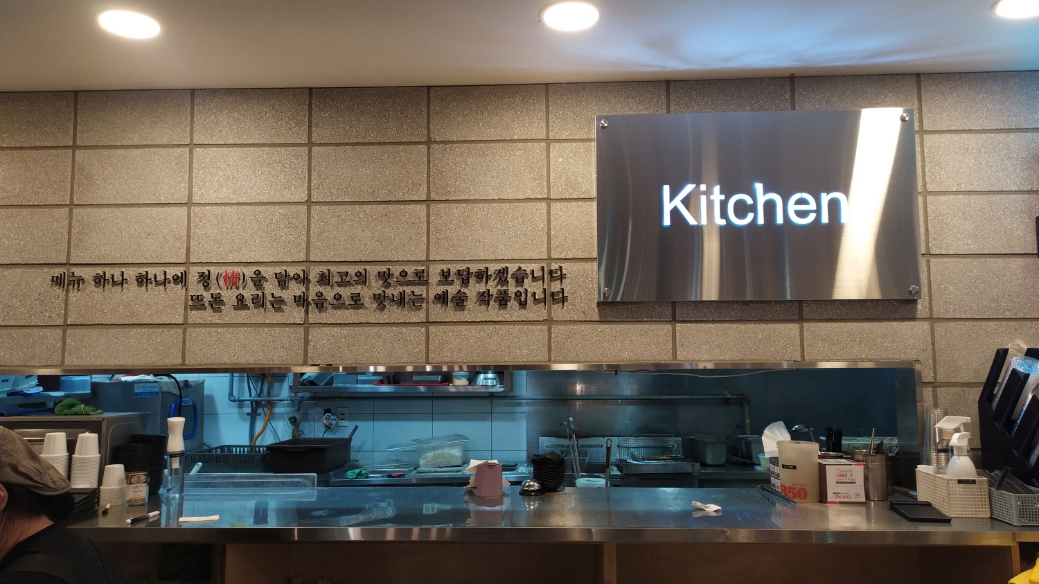 배달이 많아서 인지는 몰라도 홀 정비가 안된 느낌이 들면서 빨리 먹고 나가야 하는 분위기가 자연스럽게 든다. 주방가 가까운 테이블에는 배달에 사용되는 재료들이 보인다.