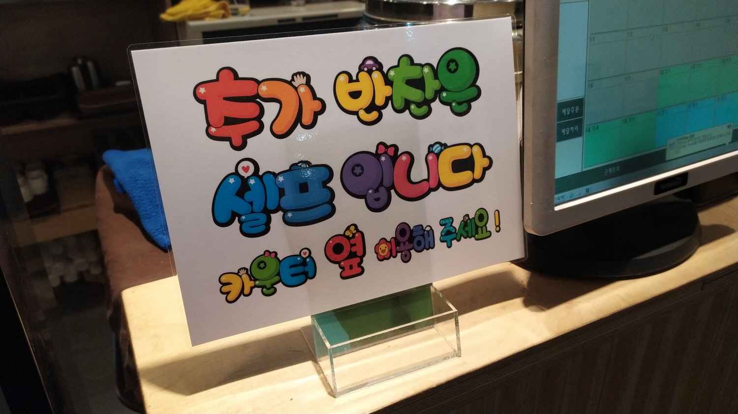 필자 기억으론 본점은 범어점과 다르게 추가 반찬이 셀프가 아닌듯하다. 참 아쉽다!! 직원 인건비를 줄이고자 셀프라면 이해라도 하는데 어떤 사정인지 몰라도 손님이 없는듯한데 셀프라고 하니 손님 입장에선 많이 불편하다.