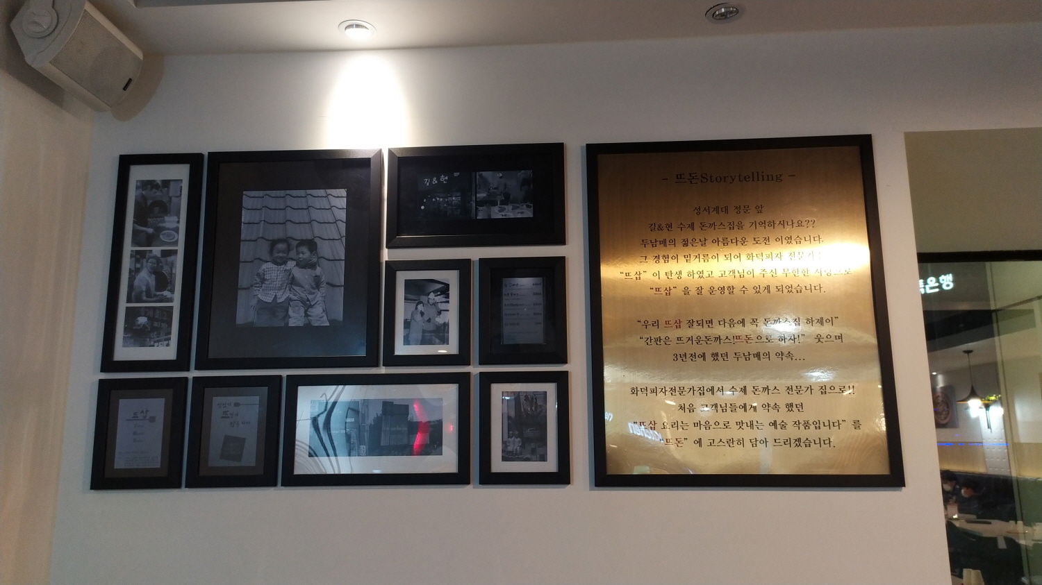 뜨돈 진천 본점에서 본 뜨돈 히스토리 역시 범어점에도 있다. 하지만 위치가 사람들이 잘 볼 수 있는 곳은 아니다. 본점에는 입구에 있어서 처음 방문한 필자는 모두 읽어보았다.