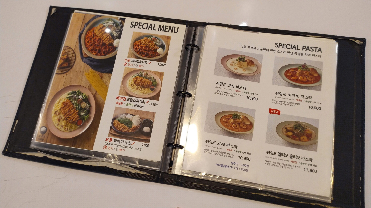 수제돈까스 전문점이지만 돈까스는 물론 본점과 동일하게 파스타, 샐러드까지 있으니 입맛대로 주문하면 되고 이상하게도 본점보다 메뉴판이 더 두꺼워 보인다.