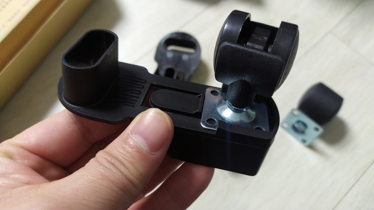 하단 미끄럼 방지 패드를 제거했다면 이번에는 바퀴를 장착하면 된다. 위 사진과 동일하게 장착해본다.