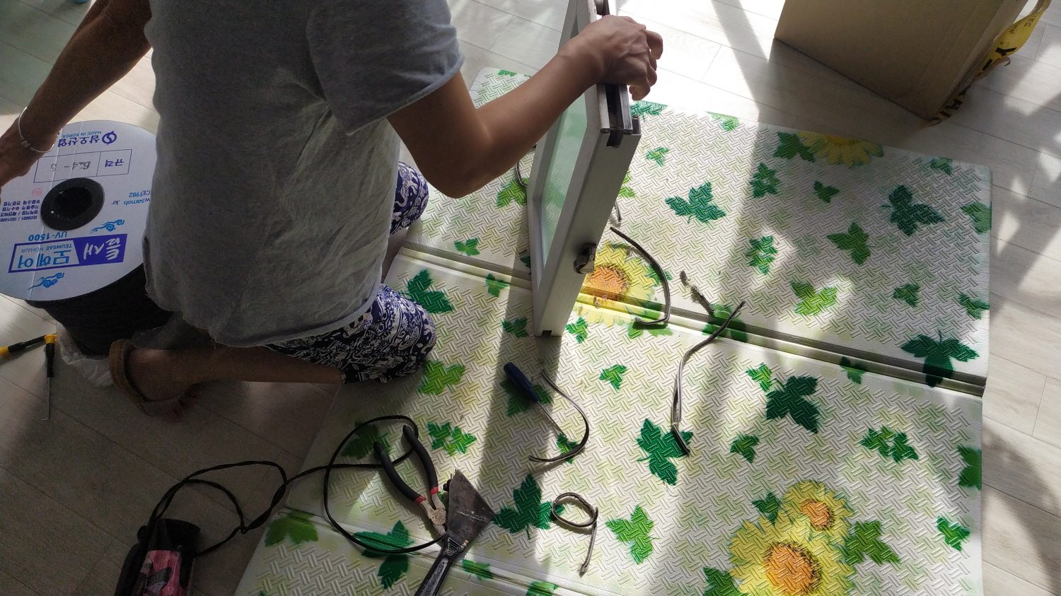 재개발로 이번에 이사를 한 처갓집, 자가 수리 및 인테리어가 힘든 쪽은 업체에 의뢰하고 집사람이 혼자서 할 수 있는 자가 인테리어 쪽은 직접 모두 했다. 그중 한 작업이 바로 방충망 교체이다