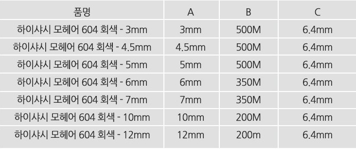 사이즈도 다양하니 가능한 실측 후 구입하는 것이 바람직해 보인다. 필자의 경우 604 회색 5mm로 구입했다.