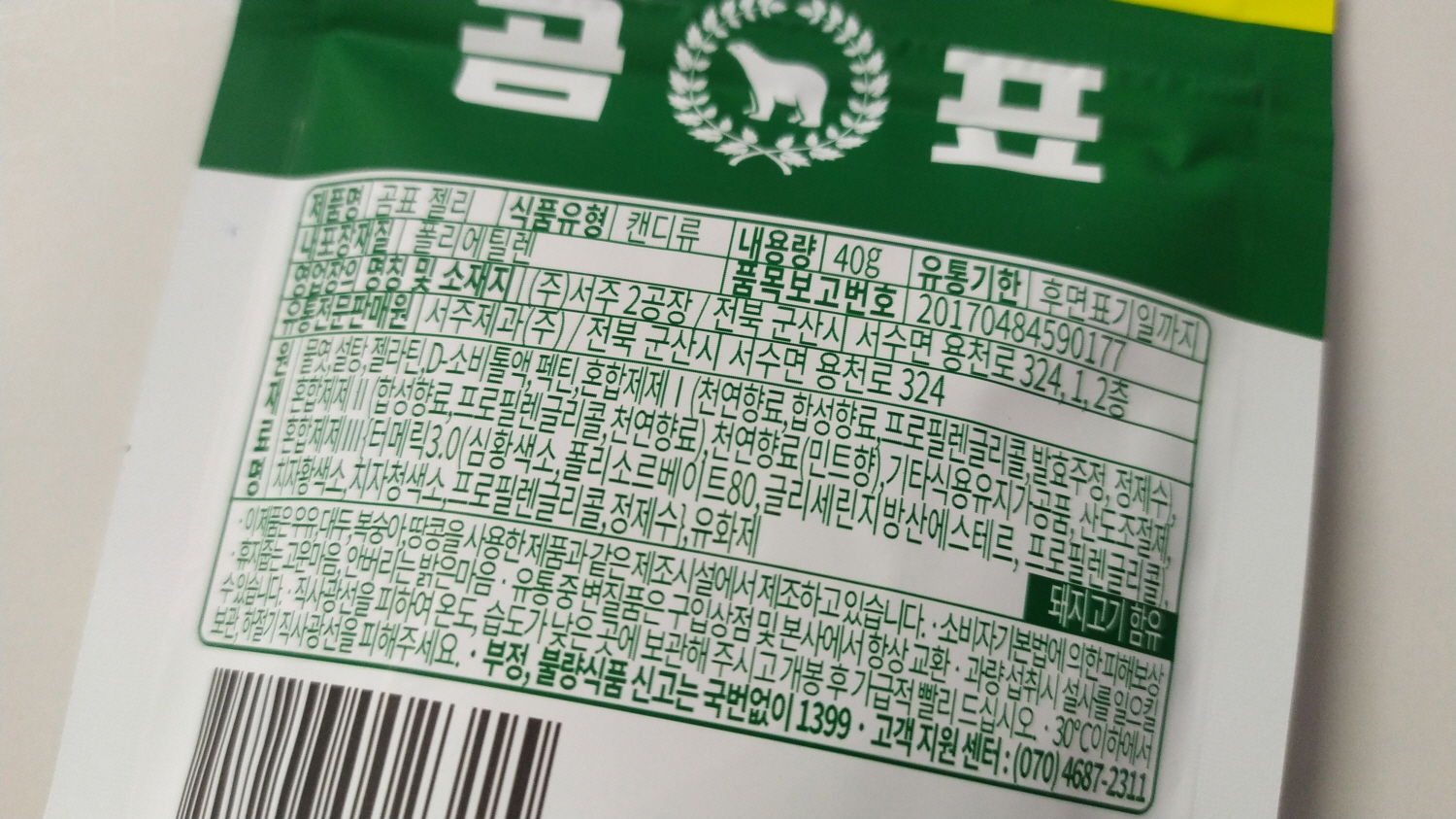 젤리의 대명 사하면 누구나 하리보를 생각할 것이다. 필자 역시 아이들이 있기에 하리보 젤리를 자주는 아니더라고 가끔 구입한다. 곰표 젤리 패키지를 보면 제일 상단 문구가 눈에 들어온다.