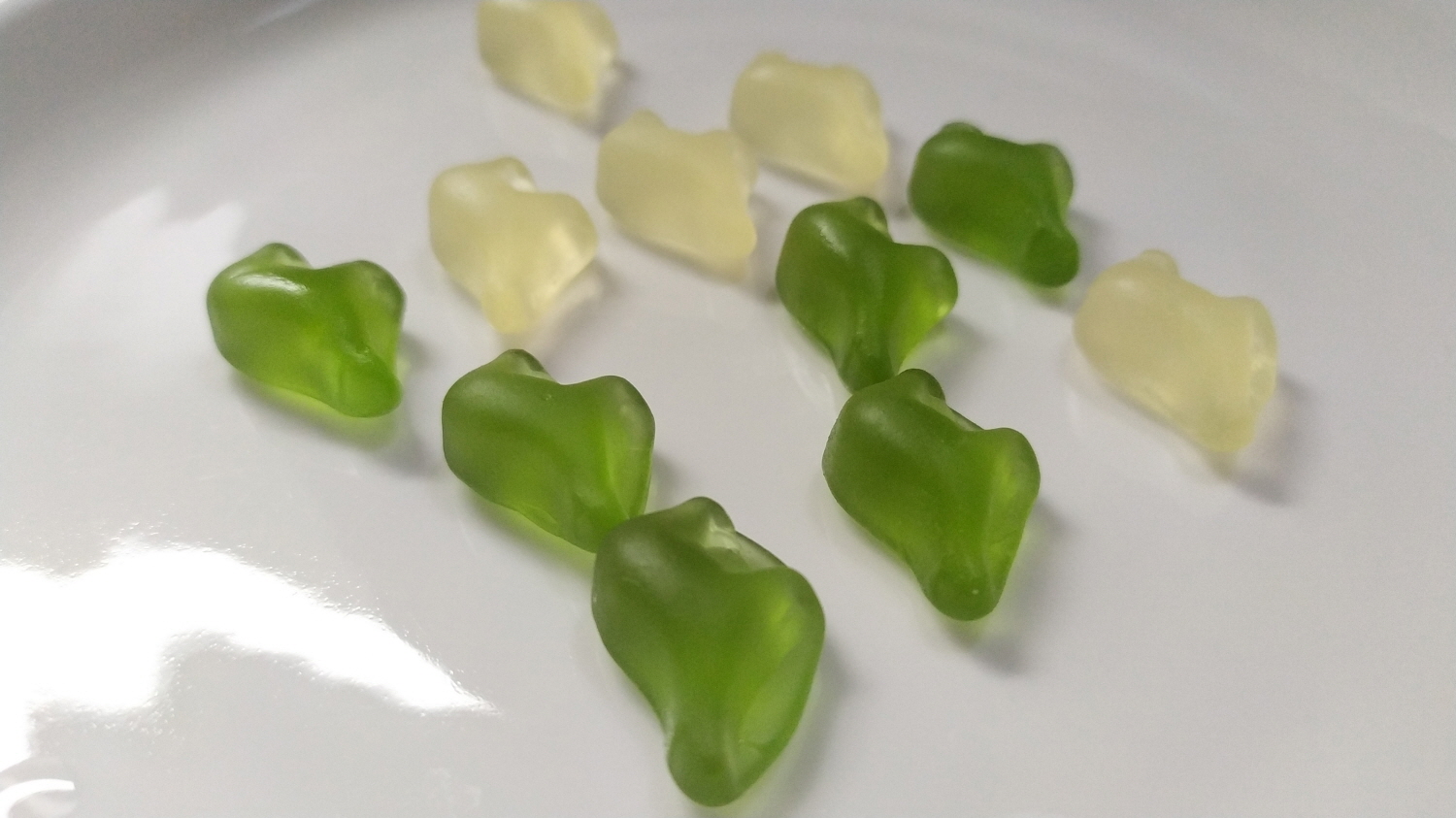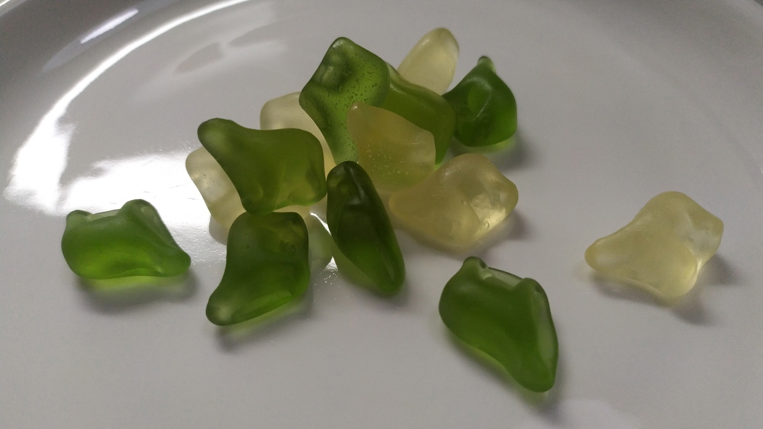 젤리의 색깔은 보시다시피 2가지, 투명과 녹색이며 맛은 민트이다.