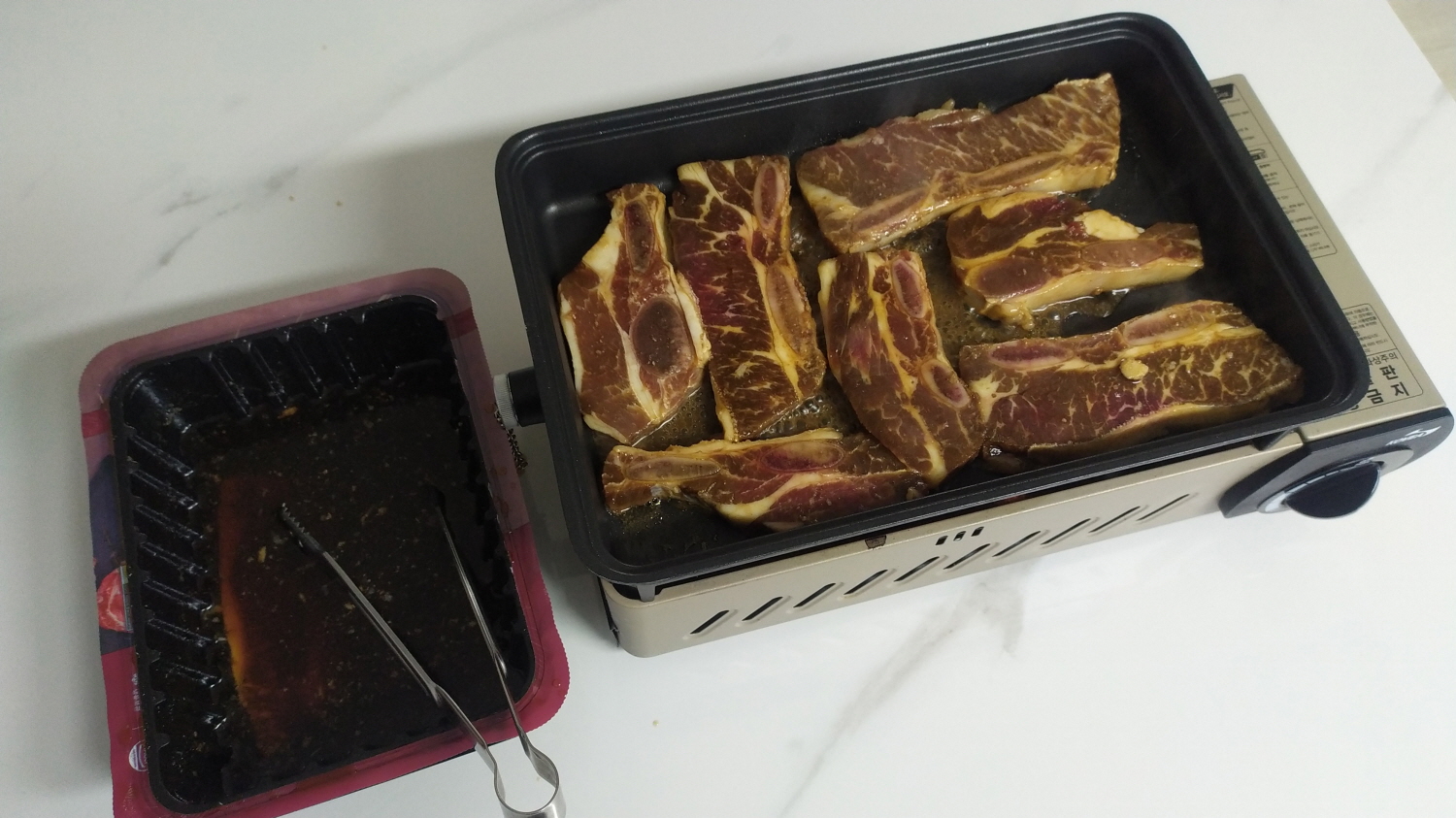 갈비는 숯불이 최고지만 아쉽게도 오늘은 구이 바다로 구어 본다.