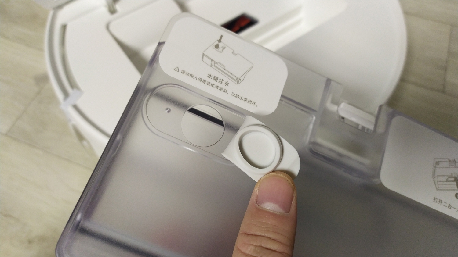 로봇청소기 본체 뚜껑을 열어보면 물통과 쓰레기통이 내장되어 있다.