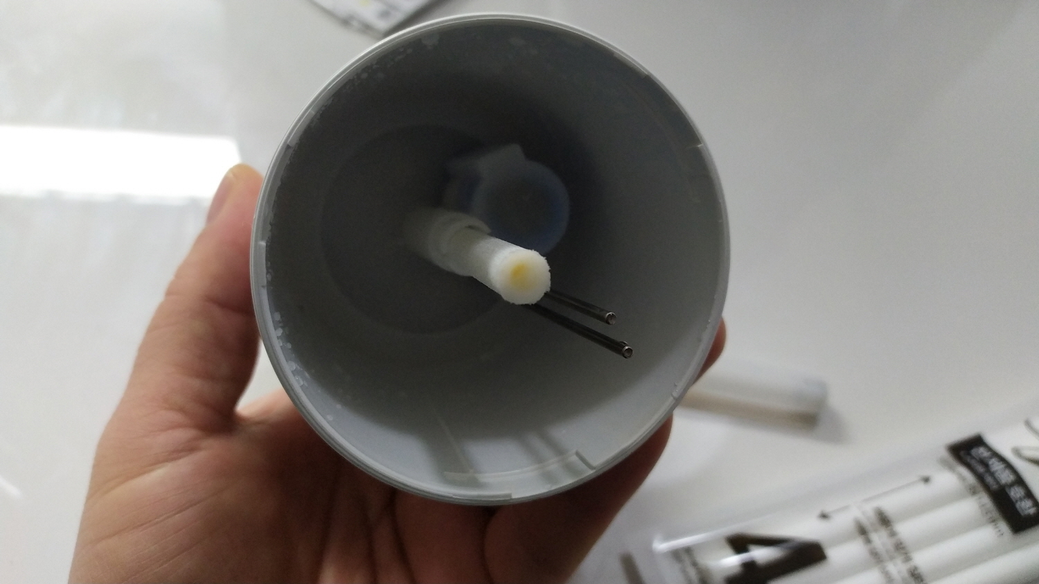 필터가 들어가는 소켓 부분 하단을 보면 스프링이 달려있다. 사이즈가 맞지 않으면 저곳으로 물이 들어가지 못하면서 가습기 작동이 안 될 수 있다.