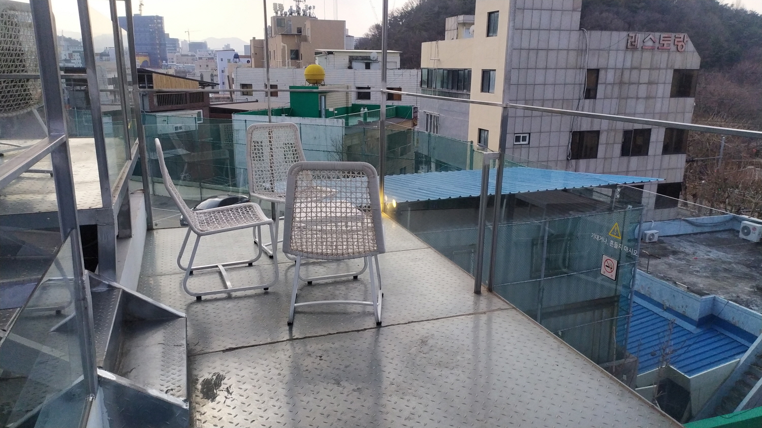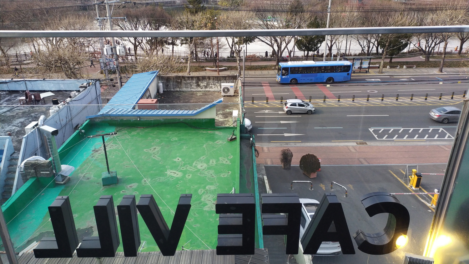 카페 빌(vill)의 장점 중 장점이 루프탑이다. 커피가 나오기까지 시간이 있으니 먼저 둘러보기로 한다. 주변 뷰가 그렇게 좋다고 할 순 없지만 낮이니 이해가 된다 카페 빌(vill)은 밤에 가야 제맛이다.