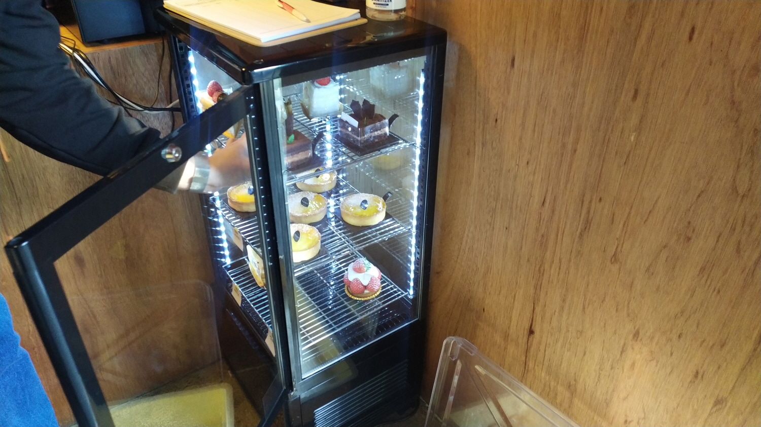 입구 문을 열고 들어가니 케이크가 새로 들어왔나 보다.